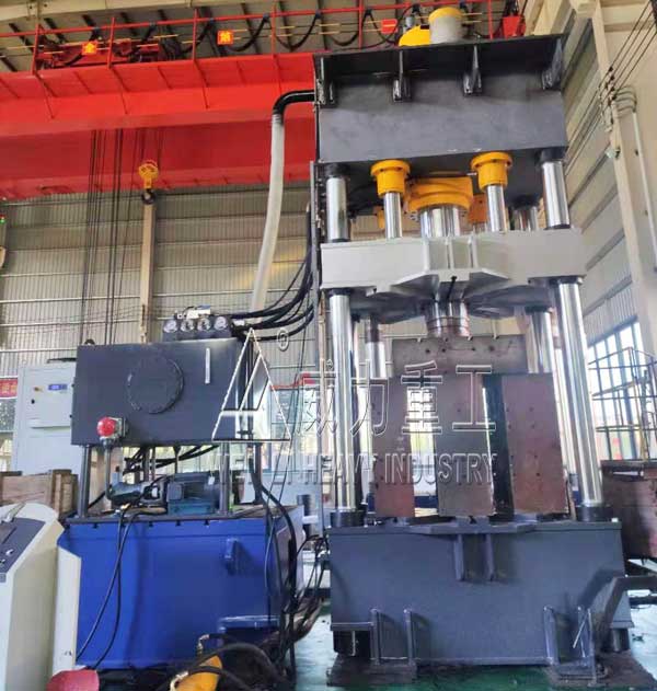 500噸/800噸封頭拉伸成型液壓機系統(tǒng)的壓力調(diào)試應從壓力調(diào)定值最髙的主溢流閥開始,逐次調(diào)整每個分支回路的壓力 閥。壓力調(diào)定后,須將調(diào)整螺桿鎖緊。