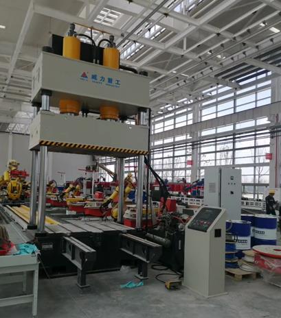 5、啟動(dòng)315噸橋梁復(fù)合材料步行板成型液壓機(jī)機(jī)器,進(jìn)行產(chǎn)品的壓制